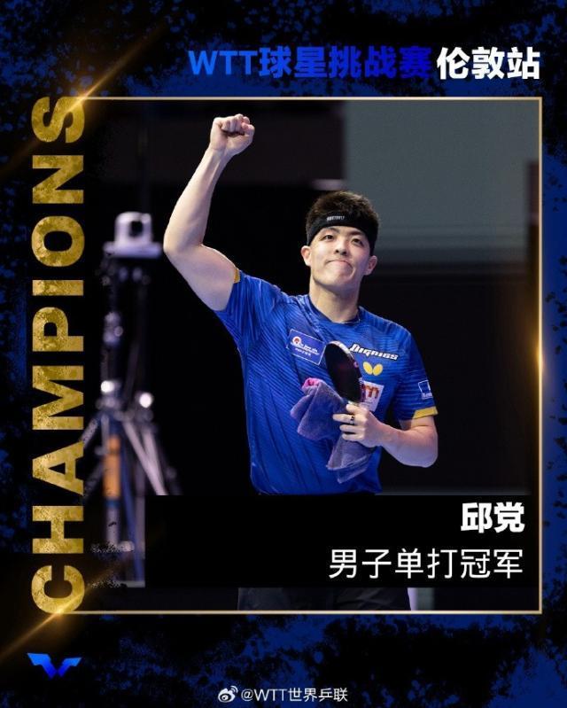 WTT球星挑战赛伦敦站结束争夺,邱党夺得男单冠军,张本美和夺得女单冠军。本站比赛,国乒男队缺席,国乒女队练兵为主,石洵瑶/张翔宇夺得女双冠军。男单决赛,邱党4比2【13比11,12比10,14比12,9比11,7比11,12比10】张本智和夺得冠军。女单决赛,张本美和4比3【5比11,6比11,11比8,11比4,11比6,6比11,11比9】早田希娜夺得冠军。